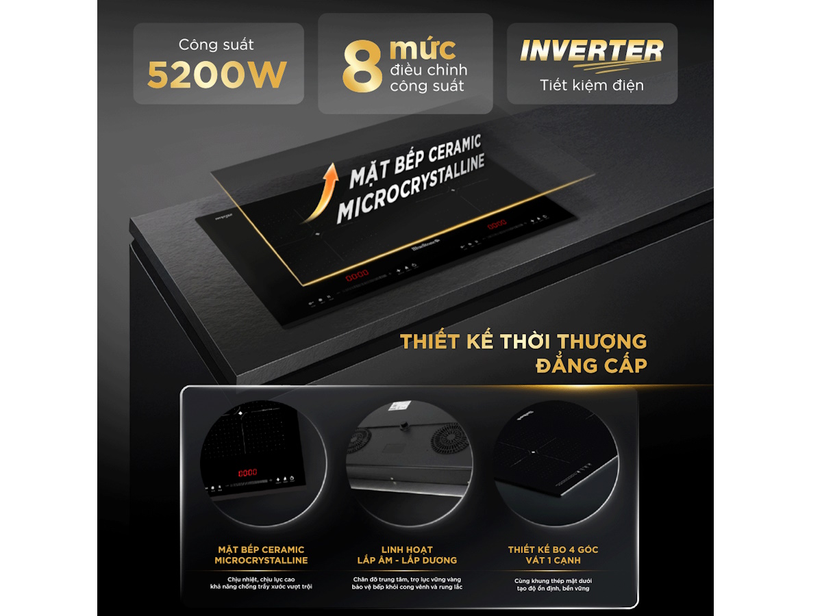 Giúp bếp vận hành ổn định ngay cả ở mức công suất thấp, tiết kiệm điện năng hiệu quả.