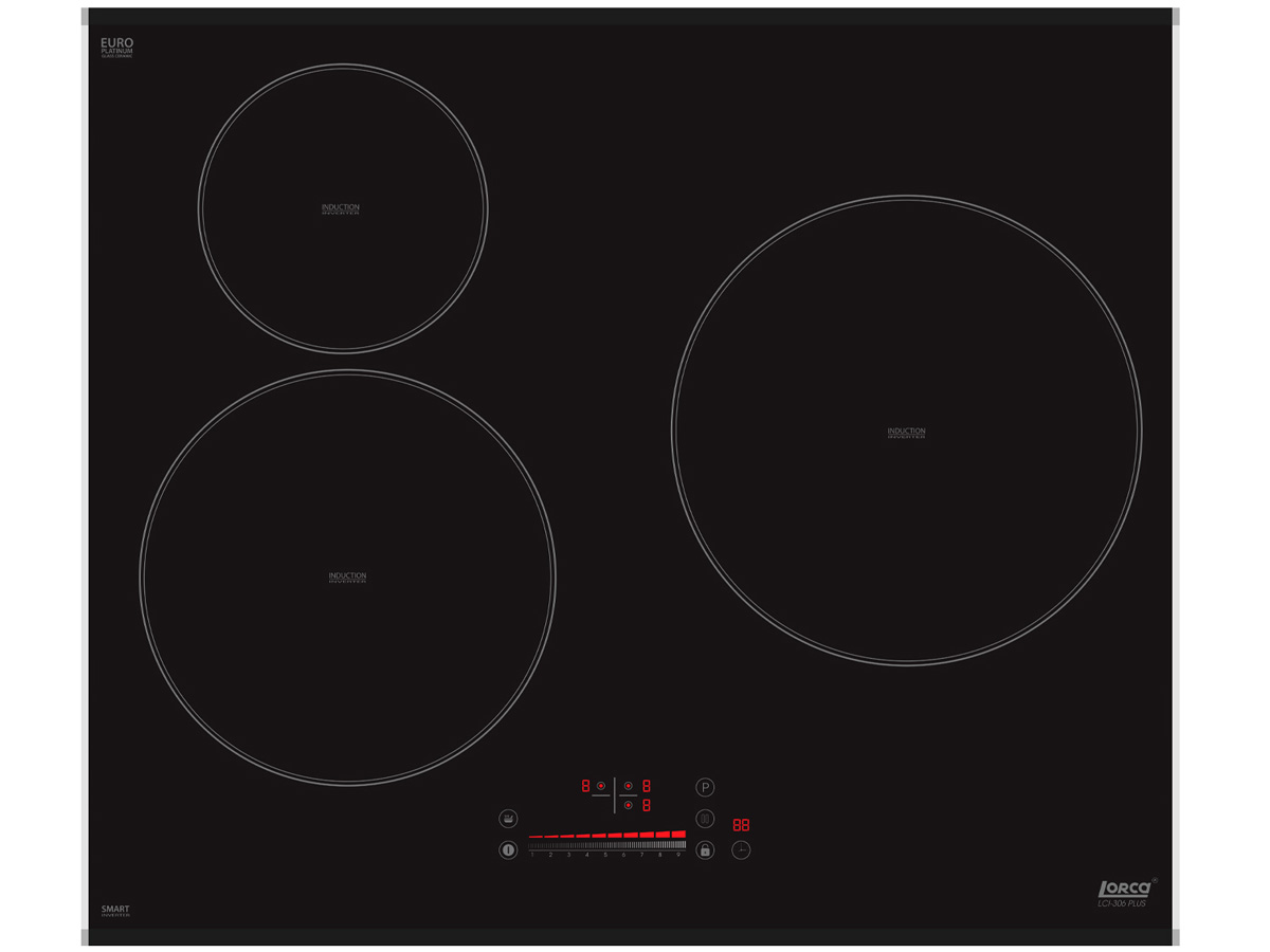 Lorca LCI 306 PLUS là dòng bếp từ ba vùng nấu cao cấp, nhập khẩu Malaysia, sản xuất bởi Sun Flame Industries. Thiết kế hiện đại với mặt kính Euro Platinum vát cạnh và bo viền kim loại, mang lại vẻ sang trọng, chịu lực và dễ vệ sinh. Sản phẩm gồm hai vùng nấu từ và một vùng nấu hồng ngoại, phù hợp cho đa dạng nồi và phong cách nấu.