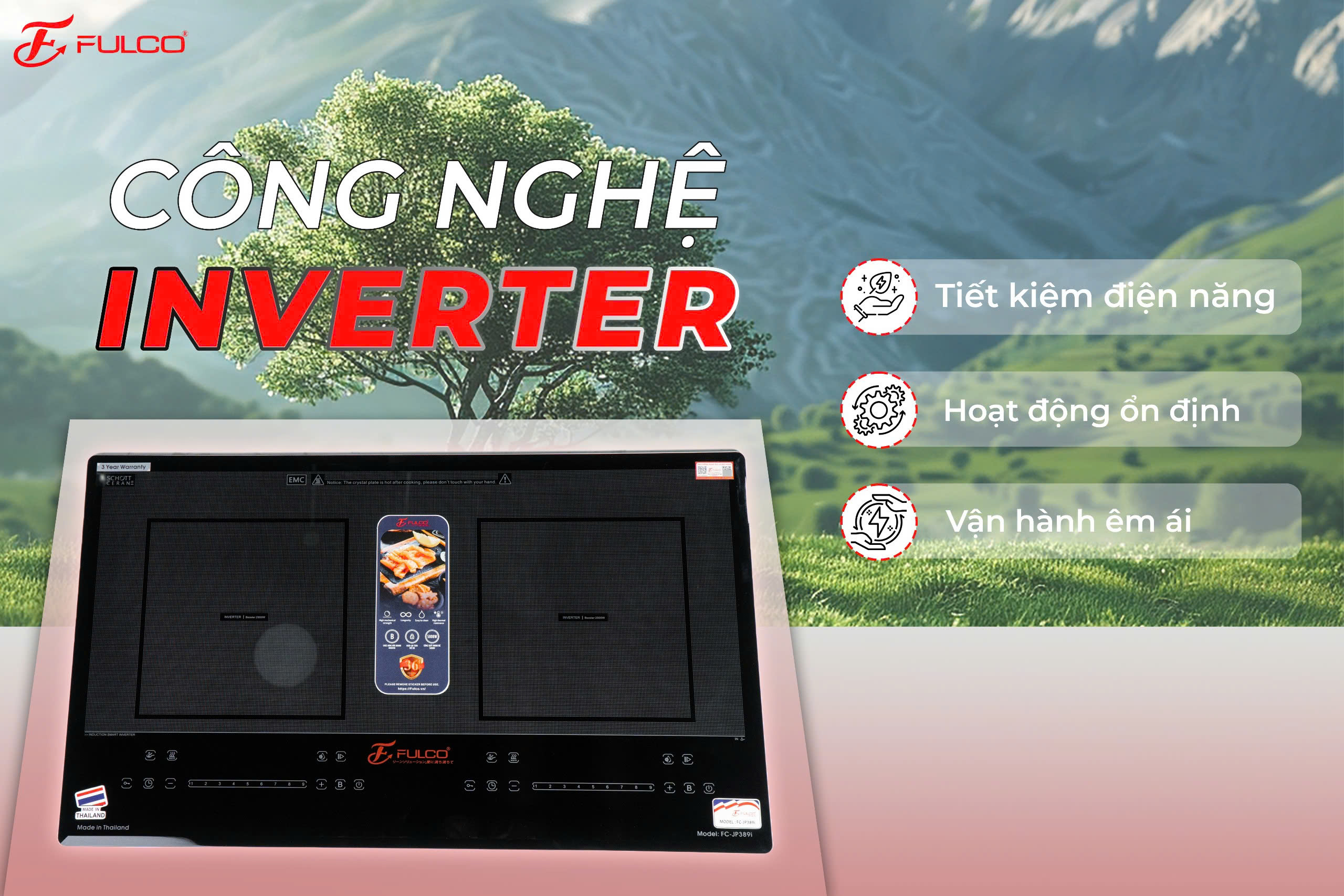 Sử dụng công nghệ biến tần Inverter kiểm soát công suất của thiết bị, nhằm tránh hao phí 30% năng lượng trong quá trình sử dụng mà vẫn đảm bảo độ bền của bếp. Do được trang bị công nghệ Inverter tích hợp trong mạch công suất, bếp đôi điện từ Fulco có thể tối ưu và kiểm soát lượng điện sử dụng để duy trì mức nhiệt mong muốn, giúp làm giảm lượng tiêu thụ điện, duy trì mức nhiệt độ ổn định theo mức công suất định sẵn.