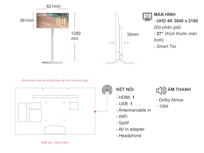 Màn hình 27 inch, xoay chỉnh đa hướng phù hợp với nhu cầu xem phim trong phòng ngủ, xem video dạy nấu ăn trong bếp hoặc mở nhạc ngoài trời để không khí bữa tiệc nhỏ thêm hào hứng,...