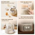 Máy sở hữu kiểu dáng trụ tròn nhỏ gọn, màu trắng nhã nhặn, phù hợp với mọi không gian từ phòng ngủ, phòng em bé đến nhà bếp. Tay cầm bằng nhựa PP cách nhiệt, giúp cầm nắm an toàn, không lo bỏng tay. Thân bình bằng thủy tinh Borosilicate cao cấp cho khả năng chịu nhiệt vượt trội, không bám cặn và dễ vệ sinh. Nắp bình bằng inox SUS304, đế đun và chân đế tiếp điện bằng inox SUS316 chống ăn mòn, đảm bảo độ bền và vệ sinh tuyệt đối.