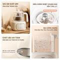 Thiết bị hỗ trợ 6 mức nhiệt độ cài đặt sẵn gồm 45°C, 55°C, 65°C, 70°C, 80°C và 90°C. Đây là dải nhiệt độ lý tưởng để pha sữa, trà thảo mộc, cà phê, nước chanh mật ong hay nước uống ấm hằng ngày. Người dùng cũng có thể tùy chỉnh nhiệt độ linh hoạt theo ý muốn. Máy có khả năng giữ ấm liên tục đến 72 giờ và tự động tắt sau 24 giờ không sử dụng, đảm bảo an toàn và tiết kiệm điện.