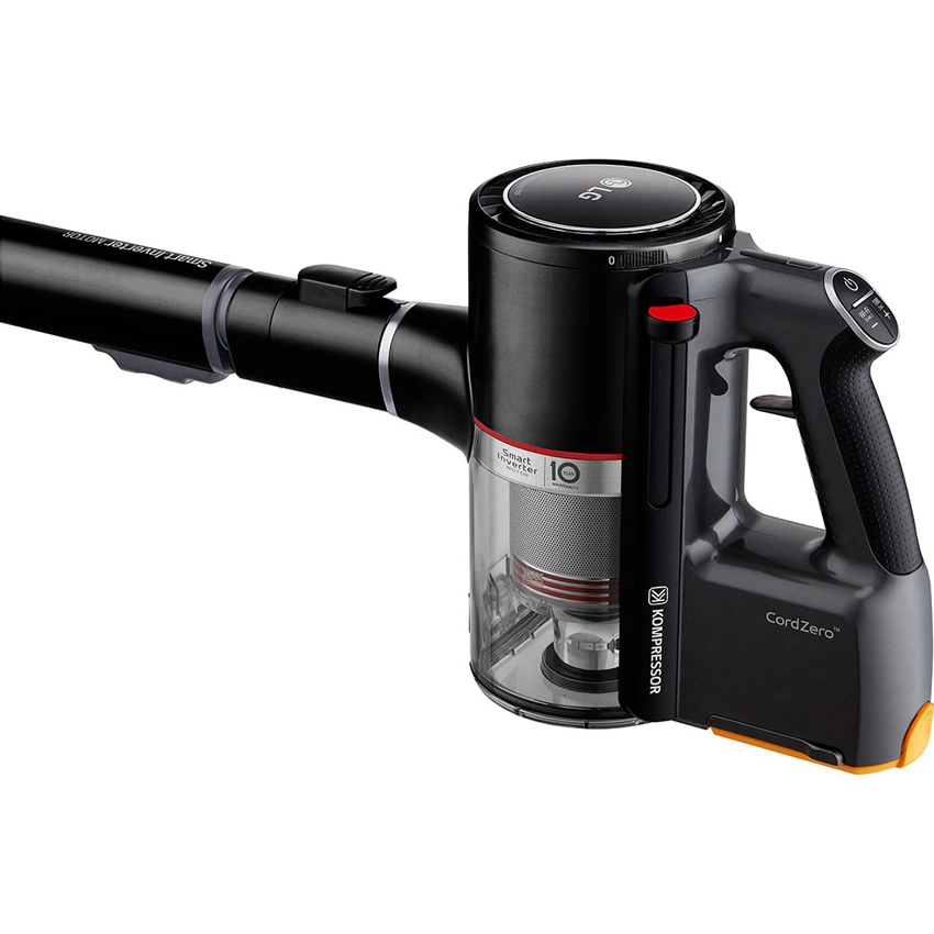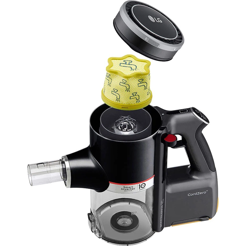 Công nghệ LG Kompressor™ với khả năng năng nén bụi và tóc tiện dụng giúp tăng dung tích chứa lên 2.4 lần (so với công suất không nén*), bạn không còn phải dọn đổ thùng chứa thường xuyên. Khi cần đổ rác, bạn chỉ gần gạt nắp hộp Kompressor nhẹ nhàng để dọn sạch bên trong.