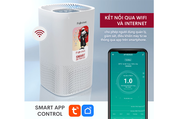 Fujihome AP8026US - Model máy lọc không khí gia đình thông minh, kết nối với điện thoại qua bluetooth và wifi để quản lý và tùy chỉnh ngay trên App.