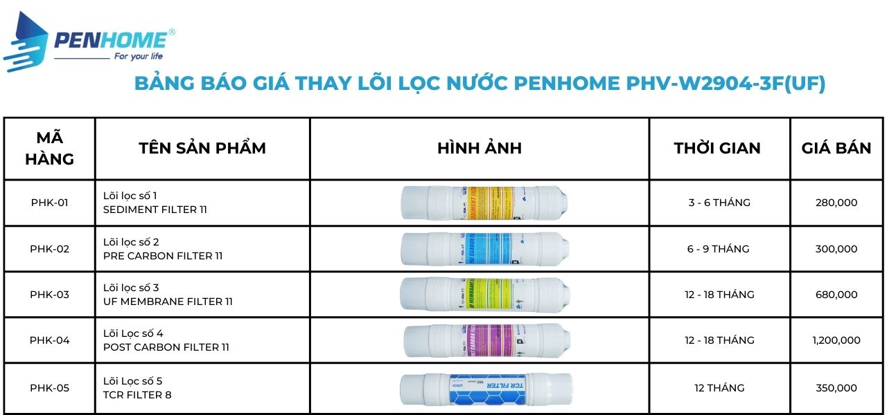 Máy lọc nước PENHOME PHV-W2904-3F(UF) được trang bị hệ thống 4 lõi lọc bên trong giúp tạo ra những công dụng vượt trội như: