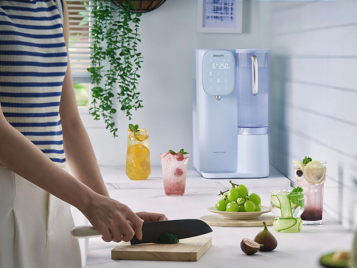5 mức nhiệt độ nước linh hoạt Nguội, 45°C, 55°C, 85°C, 95°C – làm nóng siêu tốc trong 3 giây, làm lạnh sâu đến 6°C bằng chip Peltier.