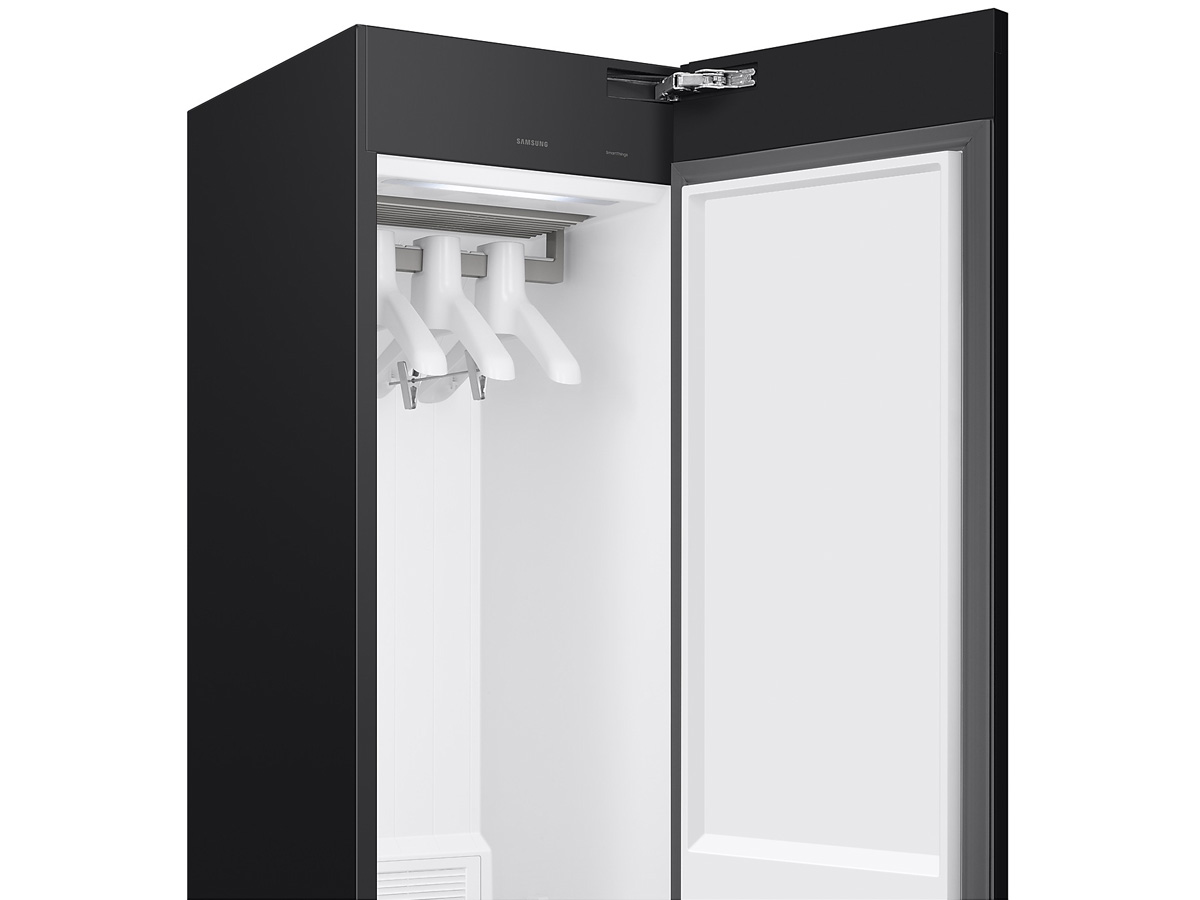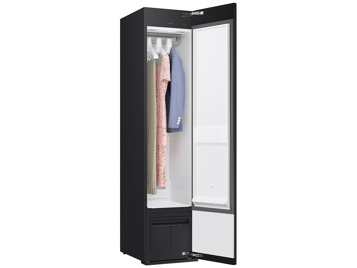 Luồng khí mạnh thổi qua cả bên trong và bên ngoài chiếc áo được treo trong tủ sấy quần áo, giúp loại bỏ bụi và mùi hôi.