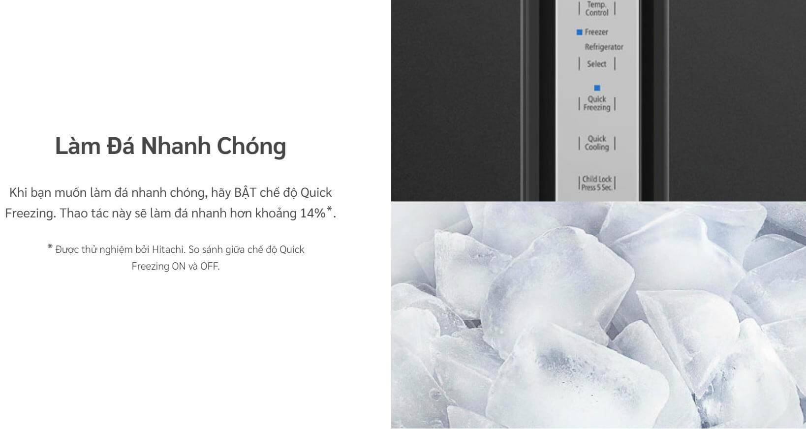 Tủ lạnh Hitachi R-SX800GPGV0 GBK còn có chế độ cấp đông nhanh và làm lạnh nhanh giúp tăng cường tốc độ làm lạnh nhiều hơn so với tốc độ thông thường. Cụ thể, khi chọn chế độ này, nhiệt độ ngăn mát và ngăn đông sẽ giảm xuống mức thấp nhất để làm lạnh và cấp đông nhanh chóng cho lượng lớn thực phẩm mới được cho vào tủ, đồng thời đảm bảo thực phẩm cũ không bị rã đông không cần thiết. Khi đã đạt nhiệt độ thích hợp, tủ sẽ tự động tăng nhiệt về mức thông thường và duy trì ổn định để đảm bảo môi trường bảo quản lý tưởng và giúp tiết kiệm điện năng.